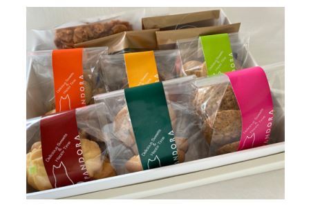【内容】 ミックスクッキー1個 チョコチップクッキー1個 ローズマリークッキー1個 キャラメルマカダミアクッキー1個 ココナッツチュイール1個 アーモンドチュイール1個 ひまわりクッキー1個 玄米クッキー(抹茶)1個 玄米クッキー(ゴマ)1個 玄米クッキー(ほうじ茶)1個 賞味期限:製造日より30日 提供元:おかし工房「パンドラ」