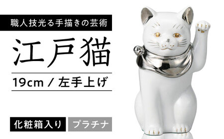 江戸猫(小)プラチナ 左手上げ 19cm 化粧箱入り 高さ19cm 【加工地】 愛知県瀬戸市
