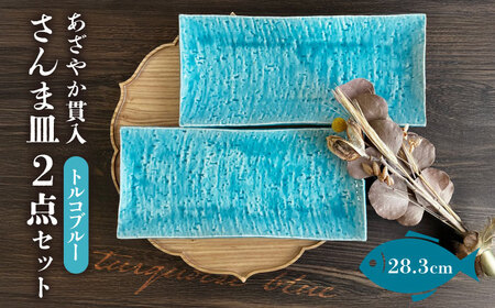 ・あざやか貫入 さんま皿ペアセット(トルコブルー):2点 サイズ:28.3×12.6×高2.8cm 重量:580g 【対応機器】 電子レンジ○ / オーブン× / 食洗機○ 【加工地】 愛知県瀬戸市