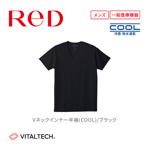 【男性用 Mサイズ ブラック】ReDリカバリーウェア Vネックインナー半袖(COOL) 疲労回復 血行促進 一般医療機器 バイタルテック