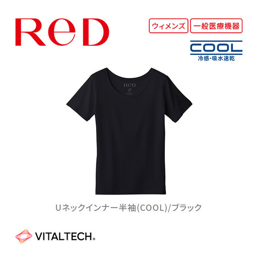 【女性用 Mサイズ ブラック】ReDリカバリーウェア Uネックインナー半袖(COOL) 疲労回復 血行促進 一般医療機器 バイタルテック