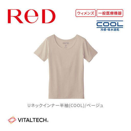 【女性用 Lサイズ ベージュ】ReDリカバリーウェア Uネックインナー半袖(COOL) 疲労回復 血行促進 一般医療機器 バイタルテック