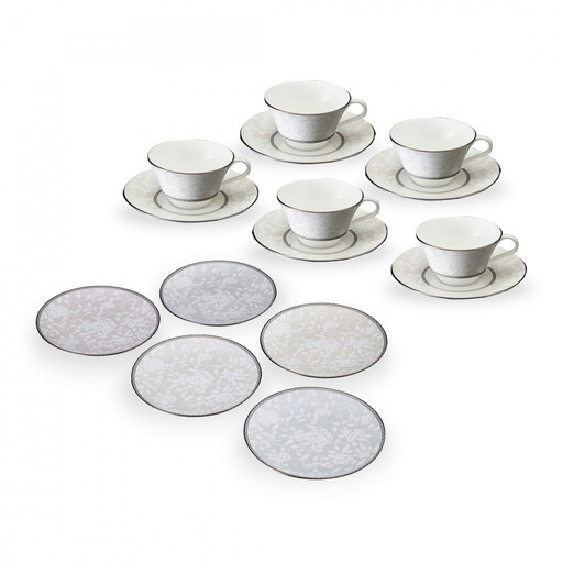 【セット内容】 ティーコーヒー兼用カップ&ソーサー 210cc×5 プレート 16cm×5(アソート) 【本体サイズ】 カップ:径101mm 長径118mm 高さ59mm 容量210cc(満水容量) ソーサー:径158mm 高さ19mm プレート:径165mm 高さ15mm 【素材】 ボーンチャイナ 【原産国】 インドネシア 【機能】 電子レンジ、食洗機使用不可 【商品コード】 96312-24467