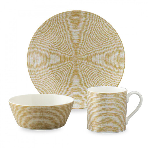 ゴールド 【セット内容】 340ccマグカップ×1 21cmプレート×1 12cmボウル×1 【本体サイズ】 マグカップ:長径114mm 短径82mm 高さ83mm 容量340cc(満水容量) プレート:径215mm 高さ20mm ボウル:径122mm 高さ50mm 容量350cc(満水容量) 【素材】 ボーンチャイナ 【原産国】 インドネシア 【機能】 電子レンジ温め、食洗機対応 【商品コード】 52528-23449