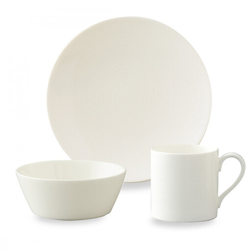 ホワイト 【セット内容】 340ccマグカップ×1 21cmプレート×1 12cmボウル×1 【本体サイズ】 マグカップ:長径114mm 短径82mm 高さ83mm 容量340cc(満水容量) プレート:径215mm 高さ20mm ボウル:径122mm 高さ50mm 容量350cc(満水容量) 【素材】 ボーンチャイナ 【原産国】 インドネシア 【機能】 電子レンジ温め、食洗機対応 【商品コード】 52538-23449