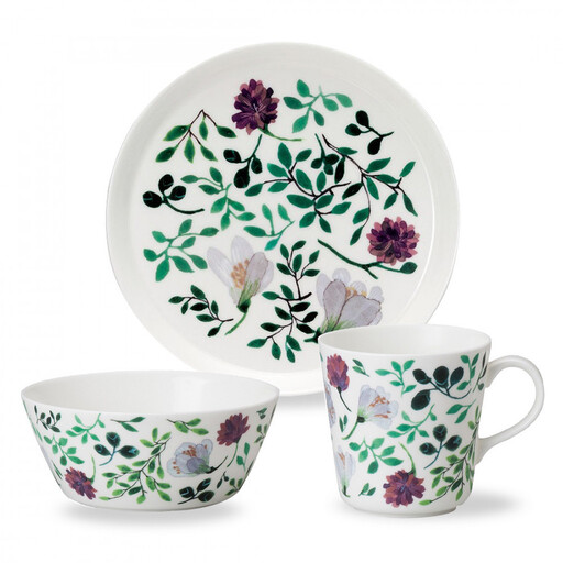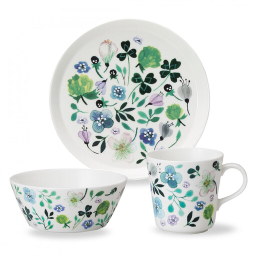 クローバーガーデン 【セット内容】 340ccマグカップ×1 14cmボウル×1 19cmプレート×1 【本体サイズ】 マグカップ:径90mm 長径117mm 高さ88mm 容量340cc(満水容量) 14cmボウル:径140mm 高さ60mm 19cmプレート:径190mm 高さ21mm 【素材】 ボーンチャイナ 【原産国】 インドネシア 【機能】 電子レンジ温め、食洗機対応 【商品コード】 51854-23452