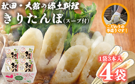 きりたんぽ(きりたんぽ270g(90g×3本)・スープ50g):4袋 ■賞味期限 製造日から90日 ■アレルギー品目 小麦・大豆・鶏肉