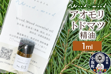 ■名称:精油 ■内容量:1ml ■原材料:アオモリトドマツ ■使用期限:開封後1年以内が目安 ■容器:遮光ガラス瓶 ■保存方法:キャップをしっかり閉め直射日光を避け、風通しの良い冷暗所で保管してください。 ■注意事項: 目に入れたり飲用したリしないでください。 原液は刺激が強いため肌に直接つけるのは控えてください。 ※ふるさと納税(寄附申込み)のキャンセル、返礼品の変更・返品はお受けできません。あらかじめご了承ください。 ■備考:クロネコゆうパケット便での発送となります。 ■提供元:株式会社西村林業 ■地場産品に該当する理由:主原料のアオモリトドマツは100%小坂町で採取されたものであり、主原料の付加価値は約99%を占める(告示第5条第2号に該当)