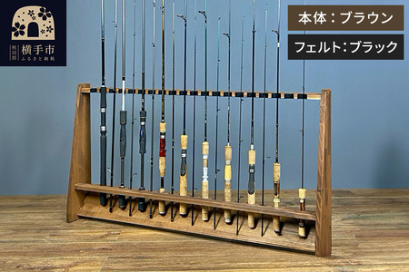 ロッドスタンド 片面20本用【本体:ブラウン】【フェルト:ブラック】