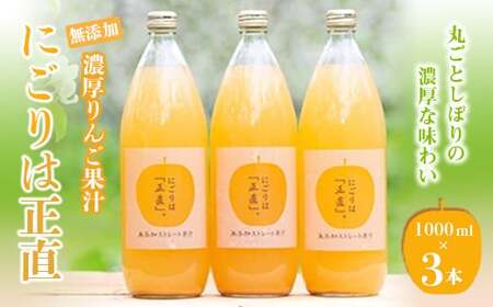 濃厚りんご果汁ジュース 「にごりは正直」 (1000ml×3本) 【NPO法人 青森なんぶの達者村】 F21U-017