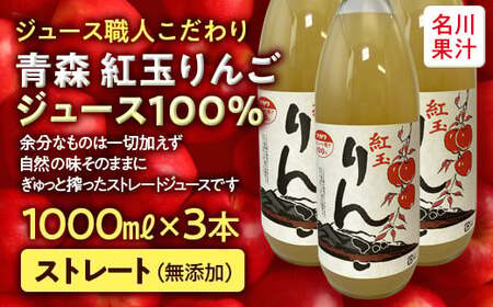 ジュース職人こだわり 青森 紅玉りんごジュース 100%ストレート (無添加) 3本入 【名川果汁】 F21U-203