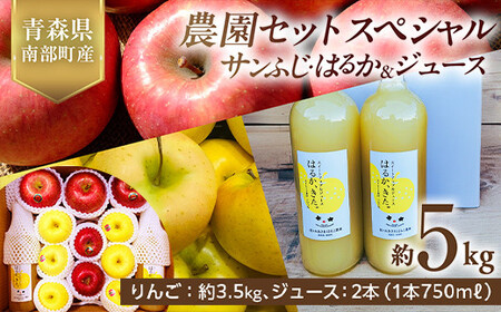 青森県産 サンふじ・はるか&りんごジュース (農園セットスペシャル) 5kg 【佐々木あきおはるこ農園】 F21U-584
