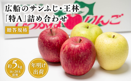 【レビューキャンペーン】年明け 贈答用 広船のサンふじ王林詰合せ約5kg・特A16~20玉 [hi-0004-007]