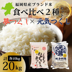 新米!!令和7年産 福岡県産米 食べ比べセット(夢つくし・元気つくし) 合計20kg (各5kg×2袋ずつ)