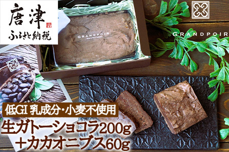 グランポワール 低GI・無添加 生ガトーショコラ200g+カカオニブス60g(合計260g)乳・小麦・白砂糖不使用・糖質カット・ヴィーガン対応 スーパーフード スイーツ