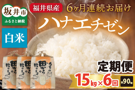【先行予約】【令和8年産・新米】定期便 ≪6ヶ月連続お届け≫ ハナエチゼン15kg×6回 計90kg ~本原農園からまごころコメて~(白米)【2026年9月上旬以降順次発送予定】 [N-8904_01]