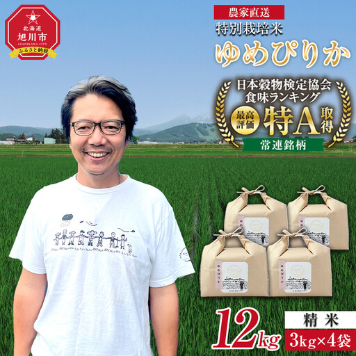 特別栽培米ゆめぴりか精米12kg(3kg×4袋) 令和7年産_05905