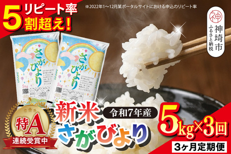 【定期便3ヶ月 新米】令和7年産 さがびより 精米 5kg×3回(H015205)
