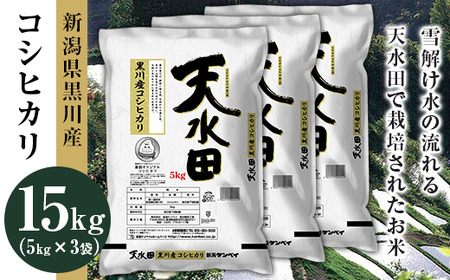 27-151D新潟県黒川産コシヒカリ15kg(5kg×3袋)【天水田】