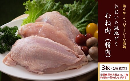 おおいた冠地どり むね肉3枚(1枚ずつ真空) ※個体ごとに重量が異なりますのであらかじめご了承ください。(1枚:160g~200g)
