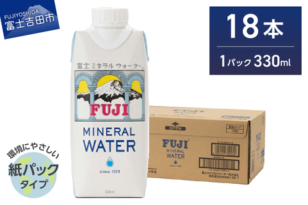 富士ミネラルウォーター 紙パック 330ml×18本 防災 備蓄 ストック 防災グッズ 保存 非常用