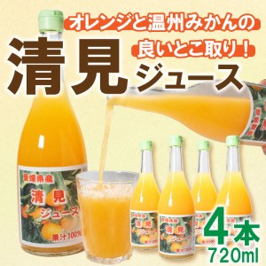 無添加甘夏ジュース 約720ml×4本[IKE268]