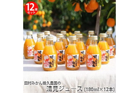 田村みかん蜂久農園の清見がっつりしぼったでぇ 清見ジュース(180ml×12本)≪果実 飲料 100% ビタミン ストレート 贈答 ギフト 有田産≫※2026年4月以降に順次発送予定