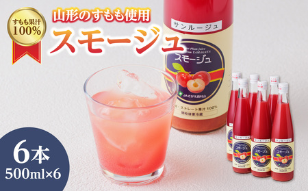 すもも果汁100%ジュース「スモージュ」500ml×6本 (内容は太陽、サンルージュ、光李の品種からお任せになります。)