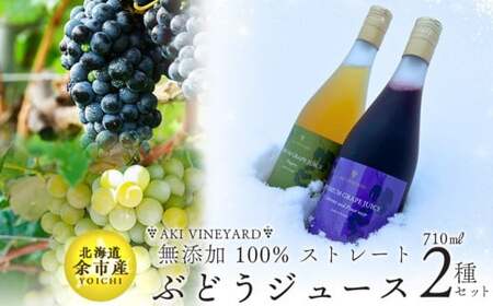 無添加 100%ストレート ぶどうジュース 710ml カベルネ・ナイアガラ 各1本 化粧箱入り 安芸農園_Y067-0147