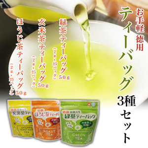 緑茶ティーバッグ50g(2g×25バッグ) 玄米茶ティーバッグ50g(2g×25バッグ) ほうじ茶ティーバッグ50g(2g×25バッグ)