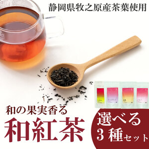 和紅茶ティーバッグ(2.5g×10包)×3種類 ※白桃・いちご・アールグレイ・レモンの4種からお好みの3種をお選びいただけます(備考欄にご記入ください)。 ご指定がない場合はおすすめの組み合わせでお届けします。