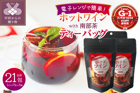~6種のスパイスを配合・電子レンジで簡単に作れる~ 【内容量】 ・ホットワインティーバッグ 7包セット1パック(1包あたり3g)×3 【原材料】 ・シナモン、ジンジャー、クローブ、コリアンダー、キャラウェイ、緑茶(山梨県産南部茶) 【アレルギー】 ・なし 【保存方法】 ・直射日光、高温多湿を避けて保存してください 【注意事項】 ※画像はイメージです。 ・小児の手の届かないところに保管してください。 ・本品は天産品ですので、吸湿してカビ・虫害等の発生する恐れがあります。保管には十分ご注意ください。 ・本品には品質保持のため、脱酸素剤を入れてあります。脱酸素剤はお召し上がりなきようお願いいたします。 【関連キーワード】 ホットワイン ティーバッグ 3袋セット ハーブ スパイス 本格的 時短 簡単