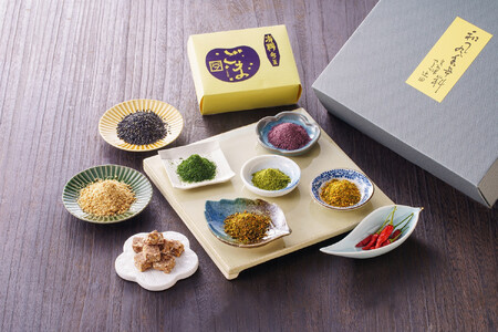 『火の鳥』極上七味唐辛子 8g 『みだれ髪』名代柚七味唐辛子 8g 『恋衣』石臼挽朝倉粉山椒 4g 国産特上鷹の爪ビン 8g 国内産黒胡麻丹波(煎り)20g 有機金すりごま 50g ×2個 しその粉(伊豆大島伝統海塩・国内産しそ使用)10g 高知糸すじ青のり 4g スパイスクランチ 35g 千代の缶 【賞味期限】 賞味期限 90日 【アレルギー】 こちらのお礼の品に含まれるアレルギー物質につきましては、 ふるさと納税専用 お問い合わせコールセンター0120-955-805 までお問い合わせください。 ※ 表示内容に関しては各事業者の指定に基づき掲載しており、一切の内容を保証するものではございません。 ※ご不明の点がございましたら事業者まで直接お問い合わせ下さい。