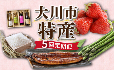 大川市特産定期便【全5回】あまおう 元気つくし うなぎ アスパラガス 酢