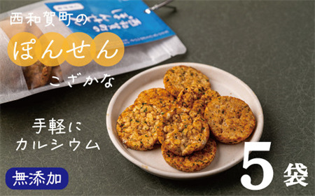 西和賀町のぽんせん こざかな味(55g)×5袋 原材料:うるち玄米(岩手県産)、植物性脂(パーム油)、丸大豆醤油(大豆・小麦を含む)、砂糖(てんさい糖)、みりん、小魚(片口いわし)、あおさのり、黒ごま