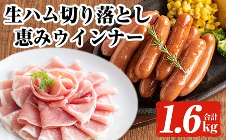 <2026年4月中に発送予定>国産 豚 生ハム 切り落とし おつまみ 小分け 業務用 荒挽き 恵み ウインナー (合計1.6kg) 【ナンチク】A941-04