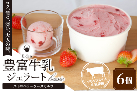 E.den(エデン) 豊富牛乳ジェラート ストロベリーソースミルク 100ml×6個 【消費期限】製造から90日