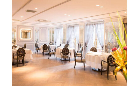 ペア(2名様)ディナープラン 利用時間:17:00~21:00(LO19:00) 食事内容:フランス料理 【注意事項】 ※ 小学生以下(未就学児含む)はお申込みいただけません。 ※ 男性の半ズボンやサンダルでのご利用はご遠慮いただいております。 ※ 定休日:なし ※ 設定除外日:なし ※ その他ご利用いただけない日がある場合がございます。詳しくはお問合せください。 【有効期限】 有効期限:発行日より12か月 ※ご利用日の2日前までにご予約ください ※目録(ご利用券)に“有効期限”を記載しておりますのでご確認ください