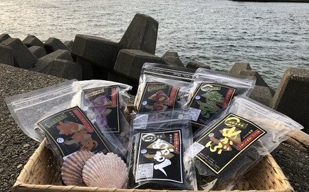 ●アジ開き:3枚 ●アジみりん:3枚 ●アジ桜干し:3枚 ●アジ昆布出汁:3枚 ●サバみりん:3枚 ●カマス開き:3枚 ●いか一夜干し:1枚 ●味付き焼あご:50g ●レンコダイ一夜干し:2枚 ●塩サバフィレ一夜干し:3枚