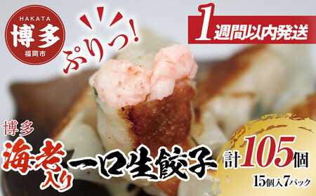 博多エビ入り一口生餃子 105個 小分け便利7パック 創業40年以上福岡老舗会社製造 【1週間以内に発送!】