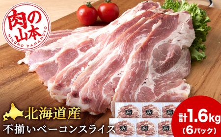 北海道産 不揃い ベーコン スライス 270g 6 パック ≪ 肉の山本 ≫