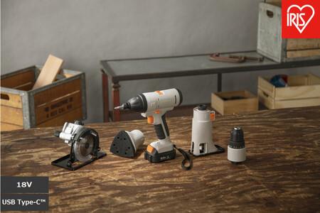 【本体】 ●製品サイズ(cm):長さ6.8×幅14.2×高さ20.5 ●製品重量:690g 【バッテリー】 ●製品サイズ(cm):長さ7.5×幅12.8×高さ5.3 ●製品重量:約400g ●電池種類:リチウムイオン二次電池 ●電池電圧:18.0V ●電池容量:2000mAh ●充電方式:USB Type-C™ ※USB充電器は付属していません。 ●USB 入力電圧/電流:DC5V/3A、DC9V/2.22A、DC12V/1.66A 【ドリルドライバーヘッド】 ●製品サイズ(cm):長さ15.7×幅6.4×高さ7.7 ●製品重量:約660g ●回転数(無負荷)低速:0-350min-1 ●回転数(無負荷)高速:0-1300min-1 ●付属品:プラスビット 2種 ×各1本、六角ビット×1本 【インパクトドライバーヘッド】 ●製品サイズ(cm):長さ12.8×幅6.5×高さ7.4 ●製品重量:約640g ●回転数(無負荷):0-2500min-1 ●最大トルク:150 N・m ●付属品:プラスビット 2種 ×各1本、六角ビット×1本 【サンダーヘッド】 ●製品サイズ(cm):長さ9.9×幅9.8×高さ14.0 ●製品重量:約380g ●回転数(無負荷):0-10000min-1 ●振動3軸合成値:4.97m/s2 ●付属品:サンドペーパー2種(60番、120番)×各3枚 【ジグソーヘッド】 ●製品サイズ(ブレード除く)(cm):長さ16.8×幅6.9×高さ11.3 ●製品重量(ブレード除く):約570g ●ストローク長:12.5mm ●ストローク数:0-2300min-1 ●切断能力 :最大45mm(木材)※ ※数値は付属のブレードを使用した時のものです。数値は目安です。 ●付属品:木工用ブレード×1本 【丸ノコヘッド仕様】 ●製品サイズ(平行定規除く)(cm):長さ17.5×幅9.3×高さ21.0 ●製品重量(平行定規除く):約990g ●回転数(無負荷):0-4500min-1 ●付属品:平行定規×1個、ノコ刃(木工用)×1個、六角棒レンチ×1個