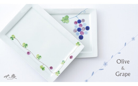 有田焼 長角トレイ オリーブ(朱)と彩りぶどうの2枚セット 大慶 A24-25