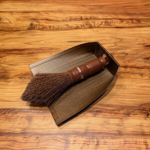 【カラー】 ブラック 【サイズ】 手箒 約H21cm 約W3cm チリトリ H17.5cm W16.5cm 【原材料名】 手箒 牛革 棕櫚 竹 銅 チリトリ 紙