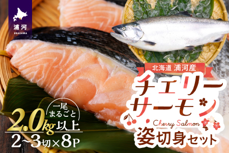 漁吉丸の船上活〆チェリーサーモン姿切身 甘塩仕立て(2.0kg以上)[15-1404]