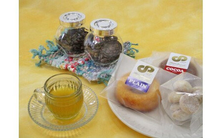 ●焼きドーナツ プレーン4個 ●焼きドーナツ ココア4個 ●mignon(スノウボール)3袋 ●mignon(ココア)3袋 【賞味期限】 【賞味期限】発送から2週間 【保存方法】直射日光・高温多湿を避け、常温で保管してください。 【アレルギー】 小麦、卵、乳、くるみ、大豆、アーモンド 【アレルギー表示】小麦、卵、乳成分、アーモンド、クルミ、大豆(材料製造工場にて落花生、カシューナッツ同一製造) ※ 表示内容に関しては各事業者の指定に基づき掲載しており、一切の内容を保証するものではございません。 ※ご不明の点がございましたら事業者まで直接お問い合わせ下さい。