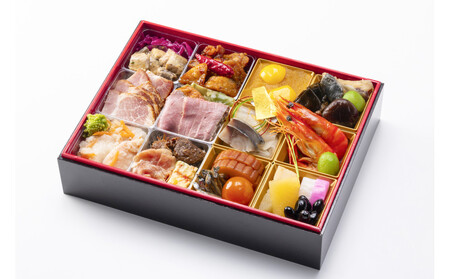 約6~7人前、品目数76品 (約13.5×約25.7)×2列×約18.0(cm) ◆お品書き◆ 【壱の重】 白梅羊羹/北海道産やわらか黒豆煮/北海道産いくらの醤油漬け/国産かぶらの柚子甘酢漬け/焼ロブスター/鮑のうま煮/国産ぶりの照焼/花梅餅/特選味付き数の子/青森県産帆立の直火焼/鮎甘露煮/焼イカとウニの真丈/焼イカと枝豆の真丈 【弐の重】 クランベリーくるみ/ごぼう穴子印籠/アカニシ貝の旨煮生姜風味/かに爪の枝豆団子/寿湯葉の煮付け/海老の旨煮/ぷりぷり蛸の照焼/舞玉しだれ餅/富有柿の生酢/鳴門金時のレモン煮 【参の重】 ずんだマスカルポーネ/ベーコンチーズドッグ・ピザ風味/ブロッコリーのコンソメ煮/トマトと白あんの笹巻包み/スタッフドオリーブ/オリーブ塩漬け/あんずの絹田巻/ドライトマトの赤ワイン煮/若鶏とチーズの照焼/たっぷり野菜真丈/若鶏のワイン焼き/豚バラ肉の黒糖仕込み/ずわい蟹とイカのクリーム和え/ビーフパストラミ 【与の重】 れんこんの芽 梅酢風味/小きゅうりの柚子マリネ風味/射込み高野/さばの塩焼き/国産金柑の甘露煮/赤かまぼこ/白かまぼこ/ブロッコリーのコンソメ煮/かにの紅白テリーヌ/たたきごぼう/田作り/紅花餅/白花餅/彩り柚子くらげ/らっきょうのワイン漬/海老のふくさ焼き/ばい貝旨煮 【伍の重】 真鱈子と昆布の旨煮/鯛のりんご酢漬/柴漬ひょうたん・紅/サーモンと彩り野菜の和え物/松前漬け/厚焼チーズ玉子/国産桃の甘露煮/はかた地鶏と法蓮草の真丈/柴漬ひょうたん・白/こはだと蕪の酢の物/国産鶏の砂肝燻製 【禄の重】 りんごと野菜のパウンドケーキ/いちごのフロマージュ/しっとり伊達巻/くずもちあまおう/富士山ムースケーキ/紫芋とりんごのパイ焼き/お多福豆/よもぎ麹饅頭/百合根きんとん/ふっくら渋皮栗甘露煮/豆きんとん/ふっくら栗甘露煮 ◆仕入れなどの状況により、予告なく内容を変更する場合がございます。あらかじめご了承ください。 【消費期限】 2026年1月2日 ◆冷蔵(10℃以下)で保存してください 【アレルギー】 えび、かに、小麦、卵、乳、あわび、いか、いくら、オレンジ、牛肉、くるみ、ごま、さけ、さば、大豆、鶏肉、豚肉、もも、りんご、ゼラチン、アーモンド ※ 表示内容に関しては各事業者の指定に基づき掲載しており、一切の内容を保証するものではございません。 ※ご不明の点がございましたら事業者まで直接お問い合わせ下さい。