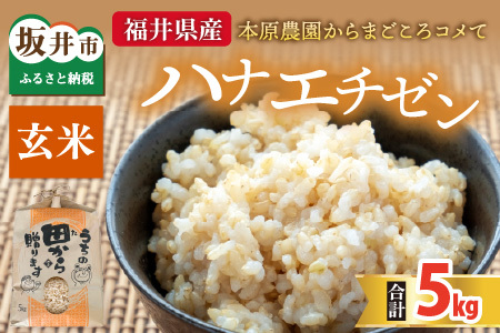 【先行予約】【令和8年産・新米】 ハナエチゼン5kg × 1袋 ~本原農園からまごころコメて~(玄米)【2026年9月上旬以降順次発送予定】 [A-8984_02]