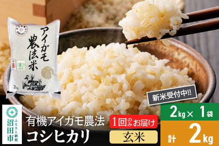 【玄米】令和7年産 新米 有機アイガモ農法コシヒカリ 2kg×1袋 金井農園