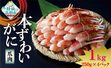 ボイル本ずわいがに爪肉:1kg(250g×4パック) ※原材料:カナダ産またはアメリカ産 【消費期限】 出荷日から90日